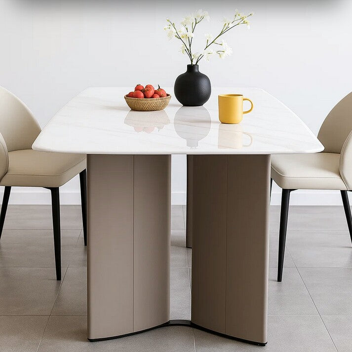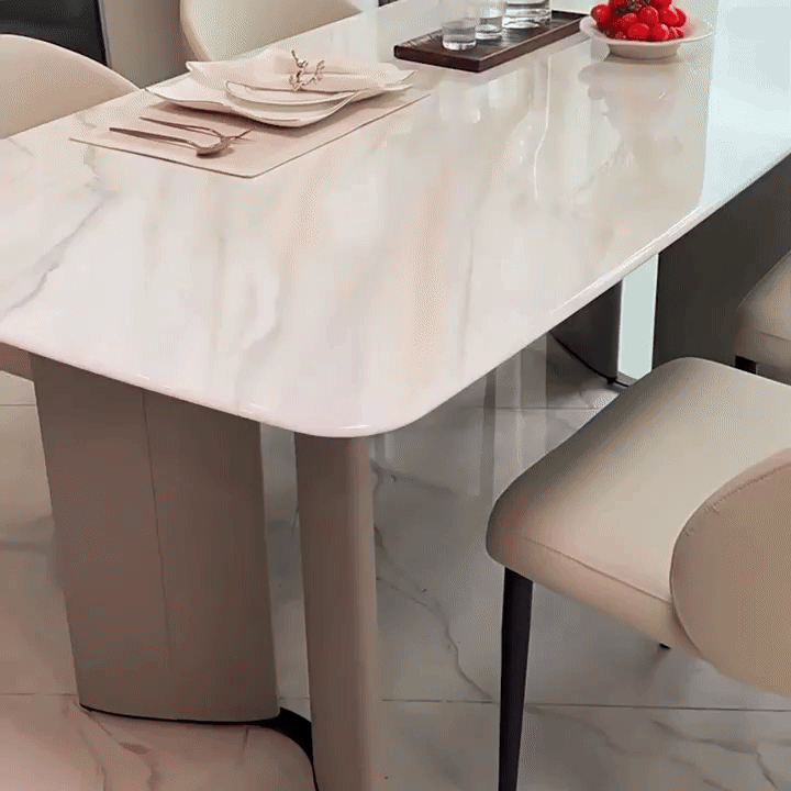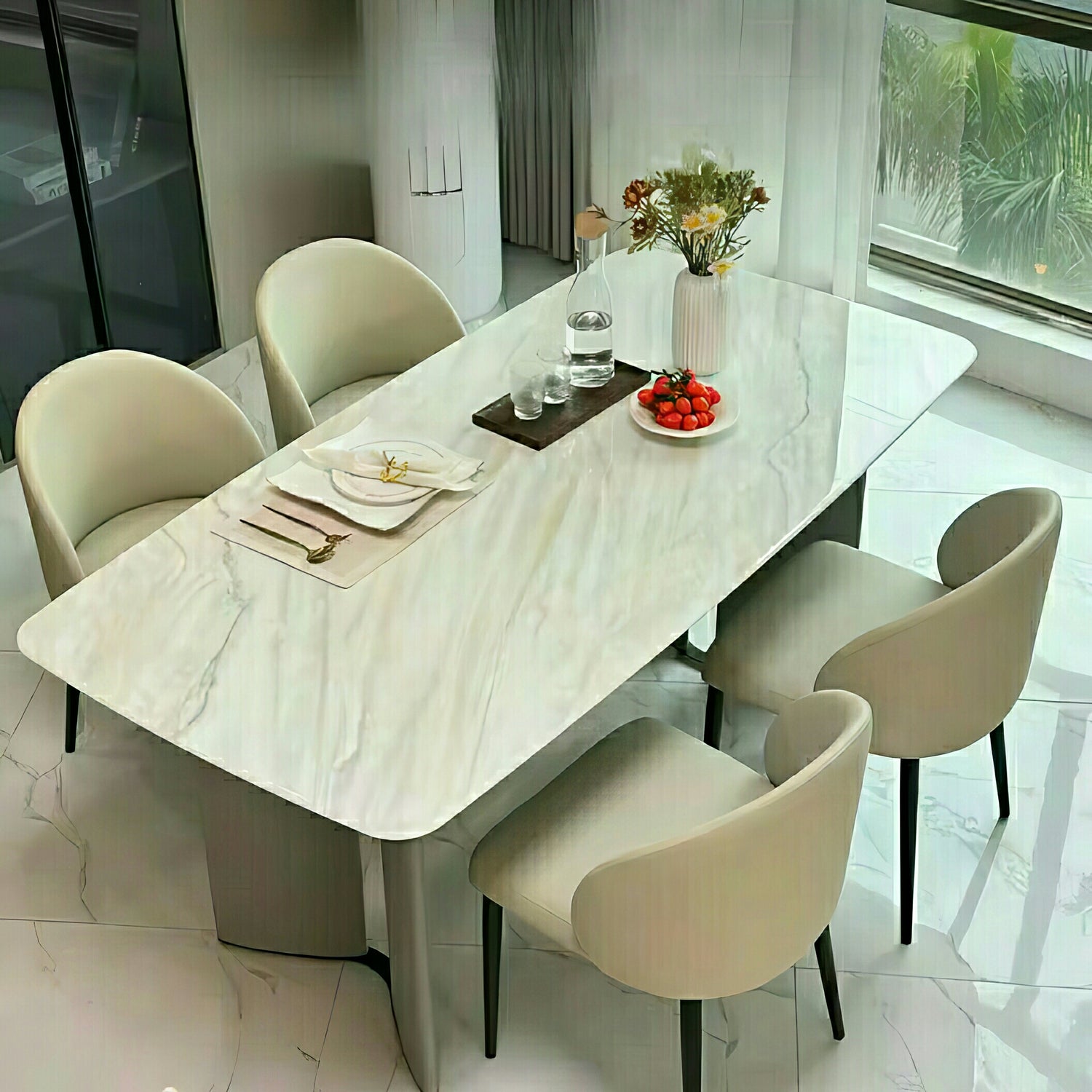 This modern minimalist dining table pairs a sleek silhouette with the timeless beauty of marble. Designed for both everyday meals and special gatherings, it brings understated luxury and durability to your dining space.