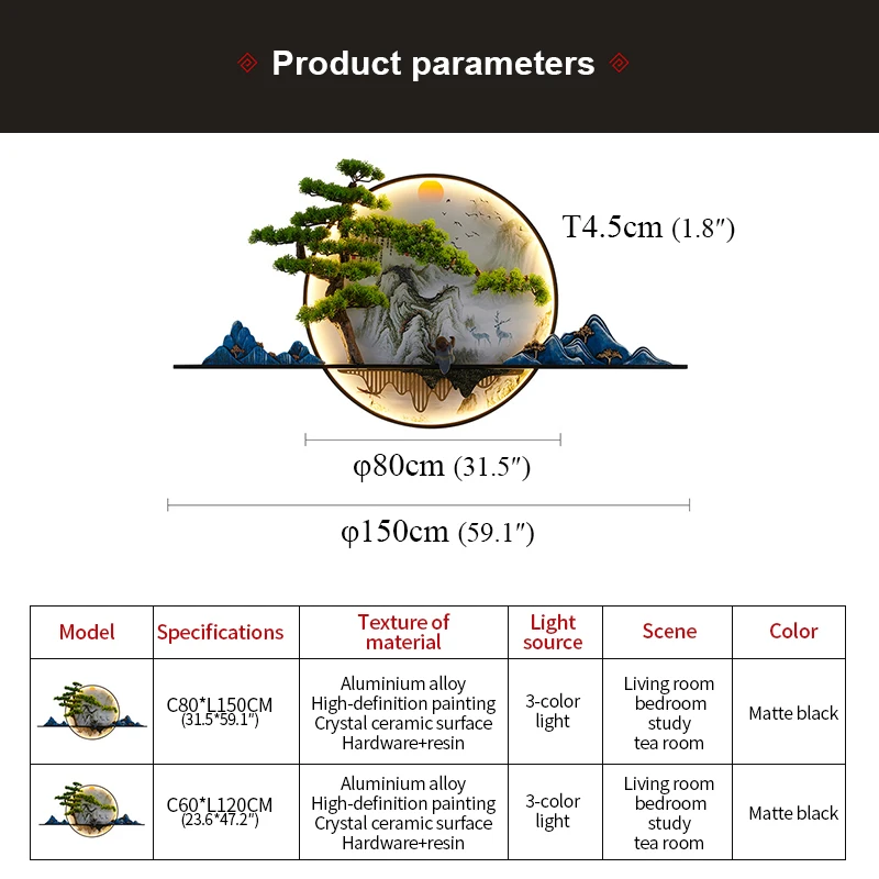Modern Wall Picture Light Creative Chinese Landscape Lamp LED for Home Living Bedroom Study