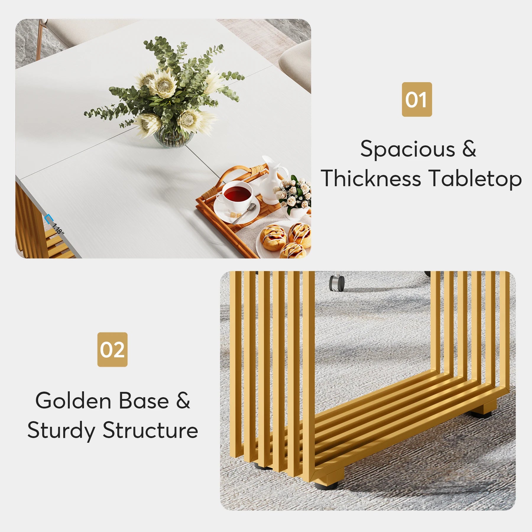 Fashionably Unique Design: The half-moon-shaped golden metal legs create a modern and chic aesthetic, enhancing the visual appeal of your dining area, making this table a stylish statement that reflects your impeccable taste.